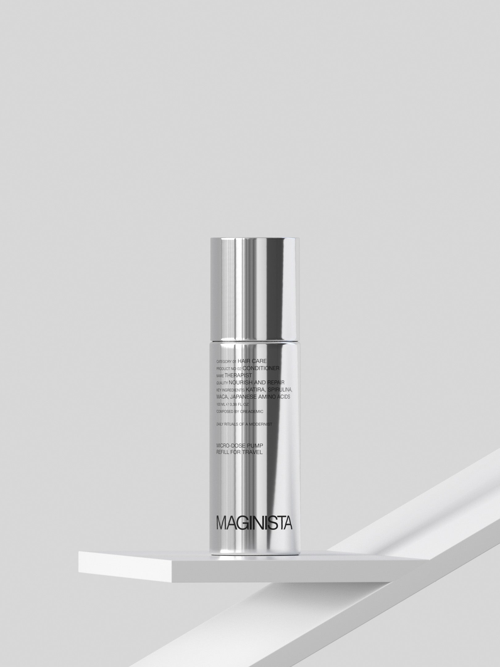 Therapist conditioner guards your hair against everyday wear and tear. This unique formula is composed of peruvian maca, spirulina foraged in hawaii and hydrolyzed keratin. It works by penetrating the hair cortex Providing improved protection and elasticity, easy detangling and enhanced moisture. As a result, your hair is left fully equipped to take center stage. Hair has no gender, and Maginista doesn’t, either.