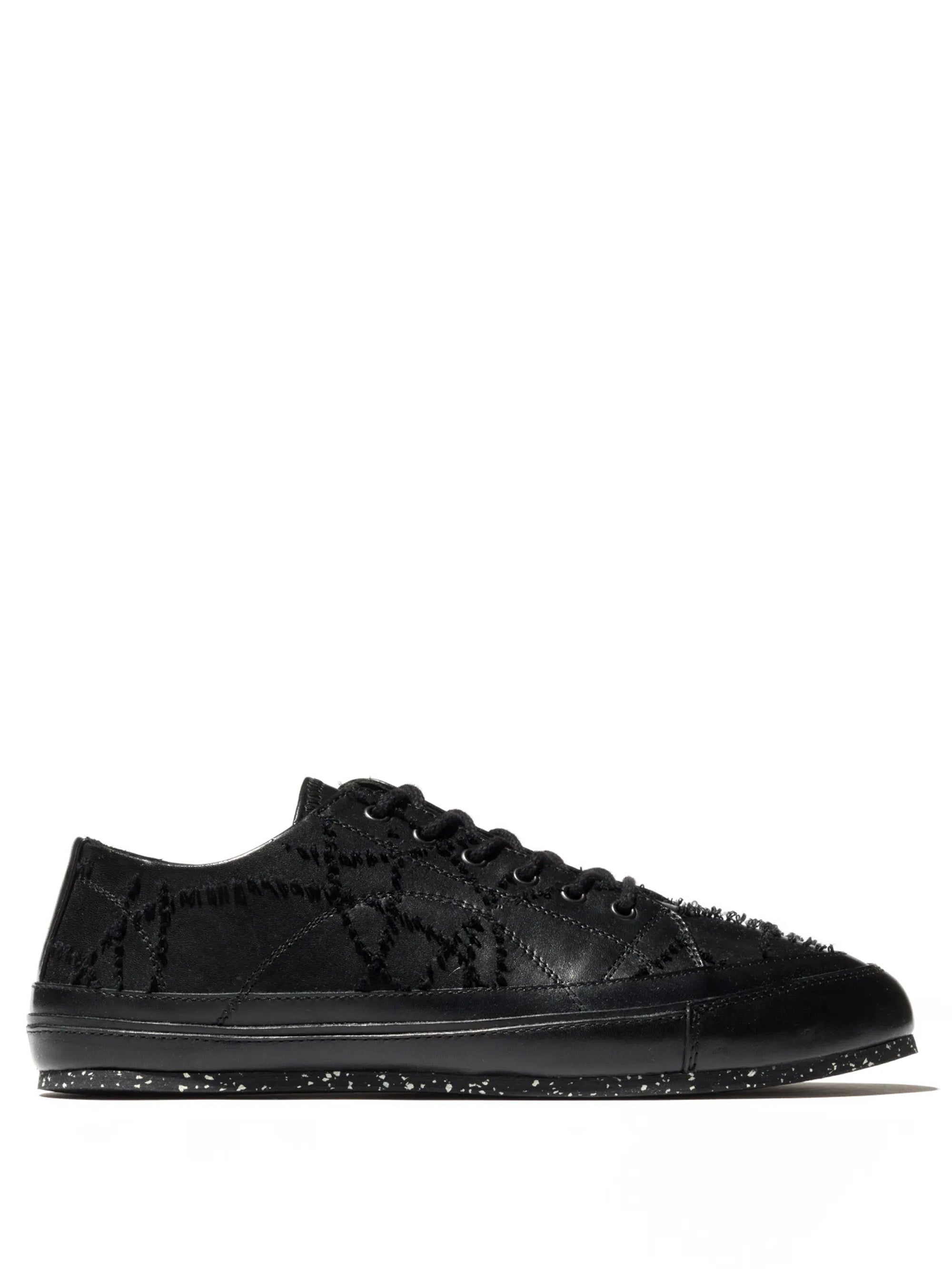 The KOMLO Trainers are lightweight retro sneakers with a pointed toe shape and streamlined proportions. The trainer features a contrast paisley jacquard pattern with calf leather outlined detailing and a newly introduced mottled rubber, lightweight and flexible outsole. Offered in a cotton blend fabric version and a full calf leather version.