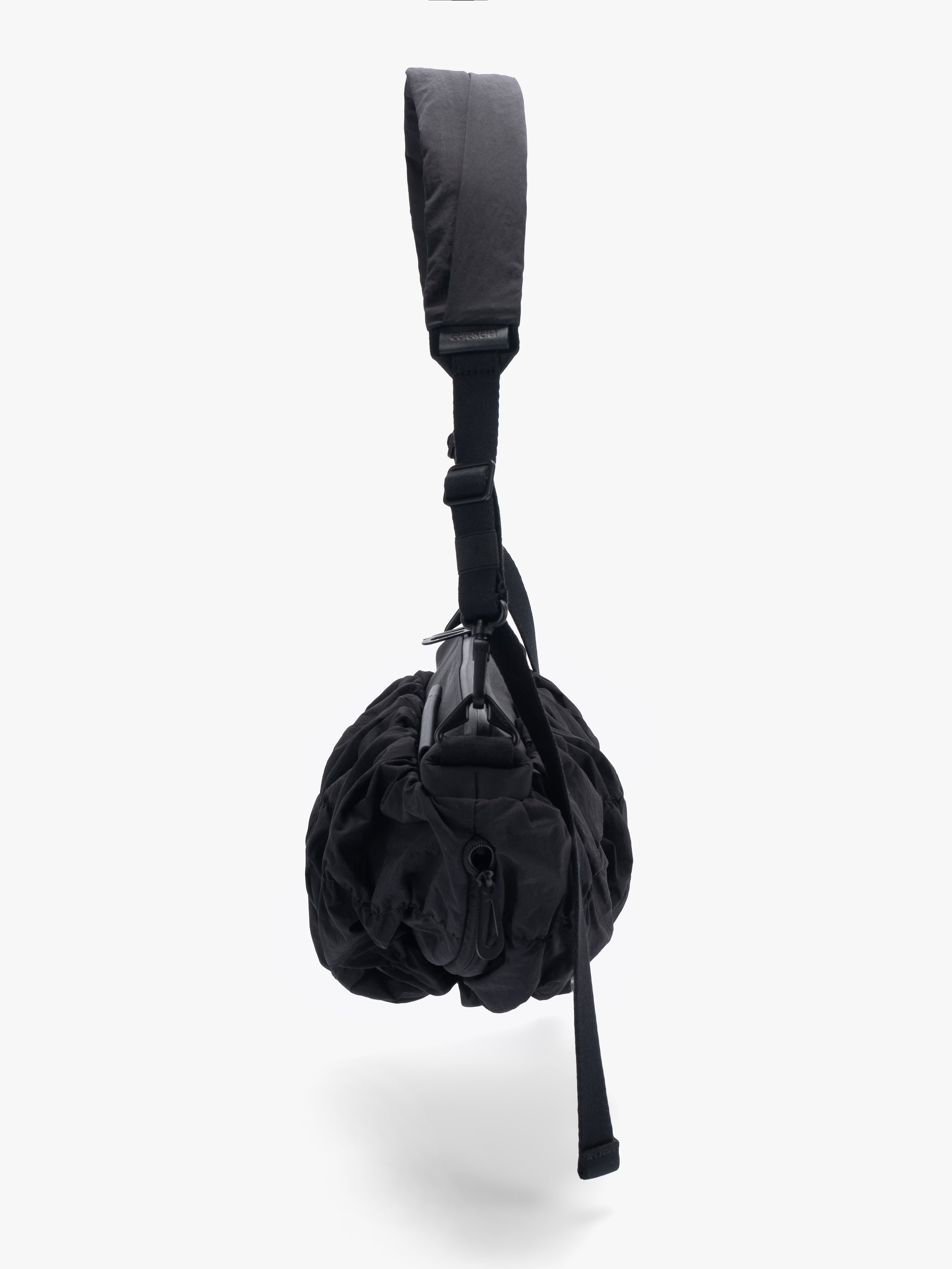 - sculptural, ergonomic crossbody design